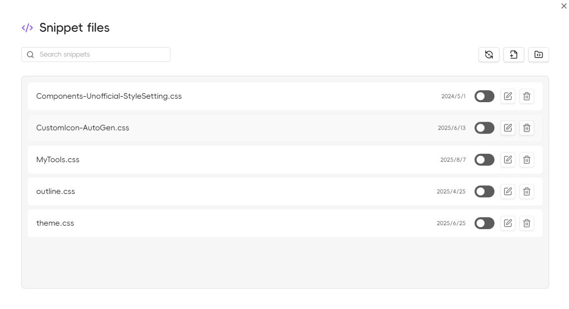 - Disabled snippets will not be applied to the Obsidian interface